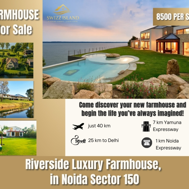 Swizz Island is a thoughtfully planned, luxury riverside farmhouse society in Noida’s prime Sector 150. With minimum plots of 1008 Sq.Yd and an attractive launch price, the project combines peaceful riverside living with modern infrastructure — gated access, 24/7 security, landscaped promenades and a clubhouse. Strategically located near the expressway and Jewar Airport, Swizz Island is ideal for weekend homes, holiday rentals and long-term investment.